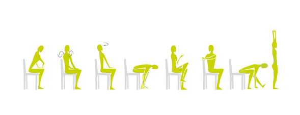 En una silla se pueden efectuar posturas de diferentes grupos: flexiones laterales, torsiones, flexiones hacia delante, etcétera. En unos minutos la persona puede desbloquearse y evitar muchas tensiones, crispaciones y estrés. También puede ser de gran ayuda los asanas en una silla para personas con trastornos de columna vertebral y muy poca flexibilidad, para luego, una vez recuperada cierta elasticidad, poder ya realizarlas sin necesidad de la misma.